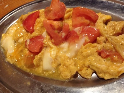 トマトのタマゴ炒めはしょっぱめの味付けでいいおつまみだ。
