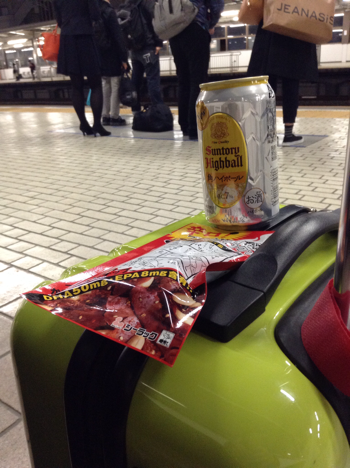 仕方なく駅に戻り、売店で缶ハイボールとつまみを買って乗り込む準備。