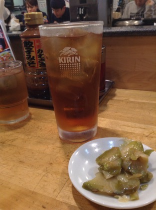 中華なので、ウーロンハイがあるのはうれしいですねー。突き出しのザーサイも美味しいなー。 #天龍銀座街店
