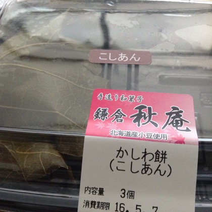 コーヒーのお伴にと買ってきたのが柏餅。スーパーの入り口にドーンと積んでありました。