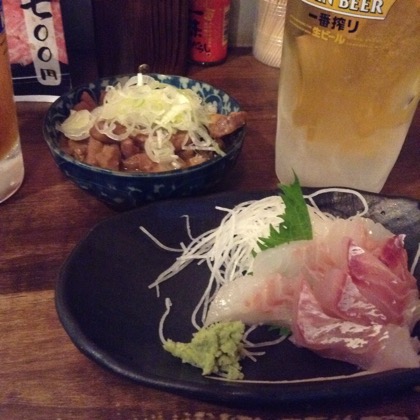 刺身3点盛りをたのんでみたら、こんな感じ。魚に関係ある会社が絡んでいるとかいう話を耳にしたことがあったような気もするんですが、たしかにこの店、刺身がアタリのことが多い気がします。