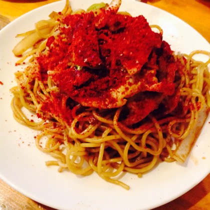 「辛い焼きそば」というのがあったのでたのんでみたら、こんな感じで登場!