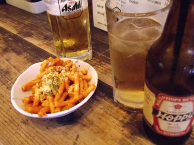 カミさんは生ビール、ボクは赤ホッピー。