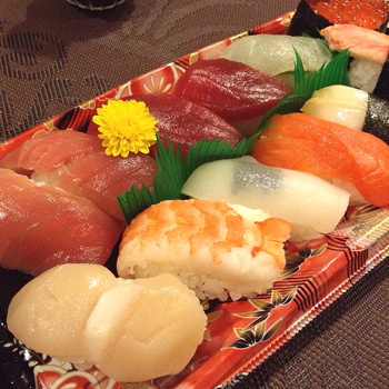 カミさんが買い物で横浜駅まで出たので、デパ地下で買って来た寿司。ン割引だからとてもお値打ち。