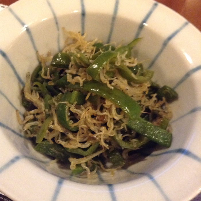 じゃこピーマン炒め。とても好きな一品なんだけど、もうちょっとピーマンがシャキッとしているほうがいいかも。