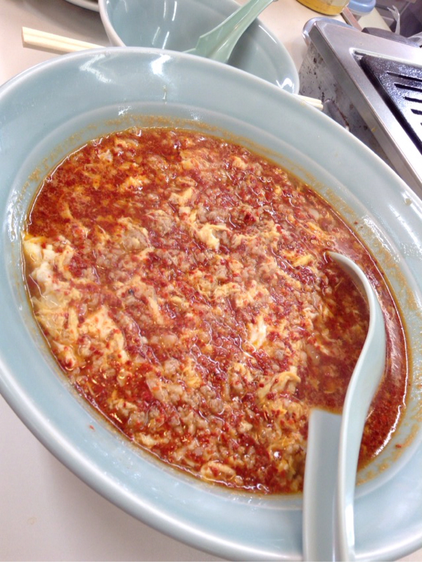 タンタン麺登場。きょうもいつもどおり中辛のニンニク増し。湧き上がるような美味さ(笑)。