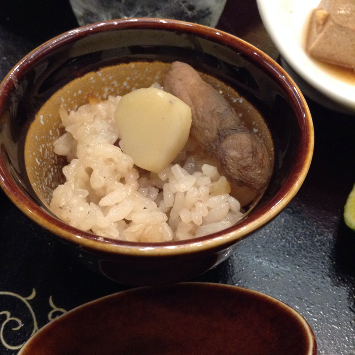 箸休めにと出てきた栗ごはん。おっ、ここにも松茸らしきものが(笑)