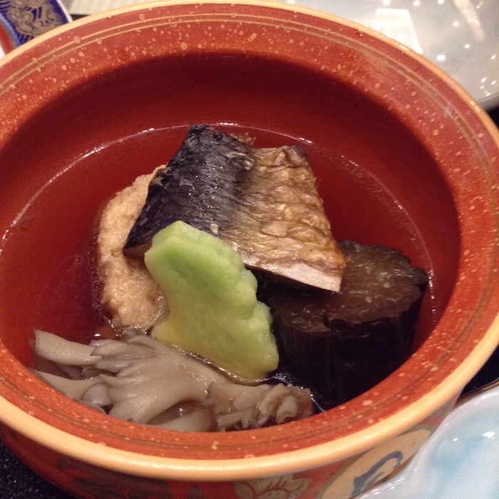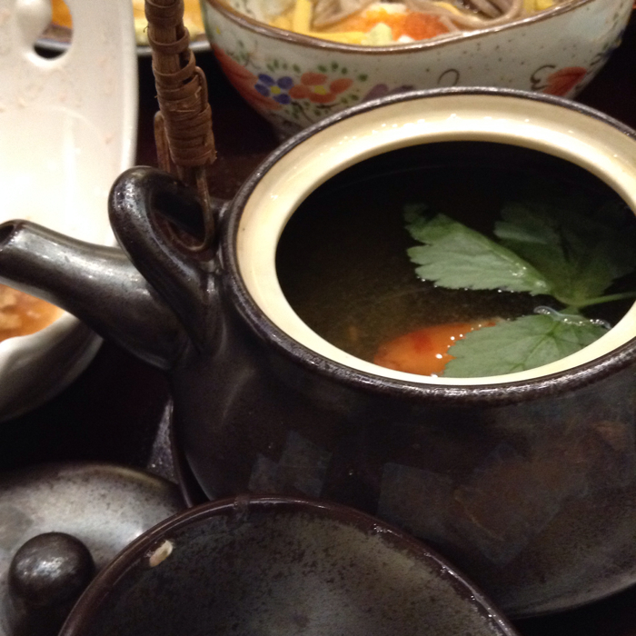 土瓶蒸し。申し訳程度に松茸のようなキノコが入っていたが、松茸かどうかは不明(笑)