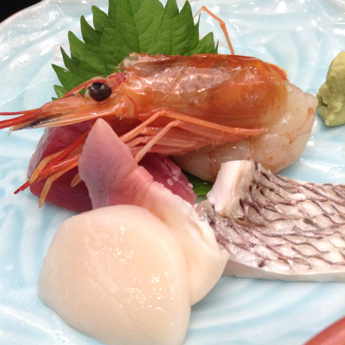 刺身。大きなボタンエビだけどボタンエビなのかどうかは不明(笑)