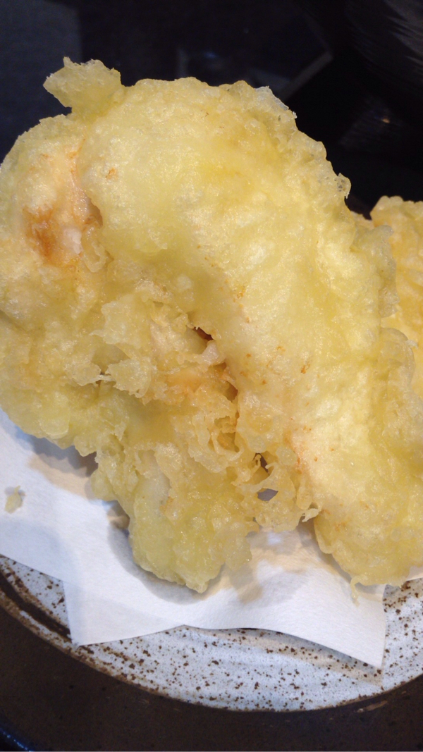 鶏ササミの天ぷらだ。汁に入れるのが嫌だったので、店の人にたのんで小皿に醤油をもらって、付けながらいただく。讃岐うどん屋で学んだ食べ方だ。