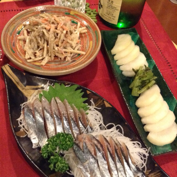 ヨークマートで買ってきた秋刀魚の刺身238円。脂乗ってて甘い!