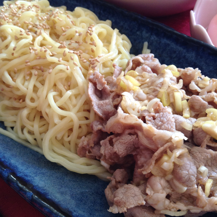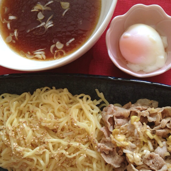 マルちゃん正麺をつけ麺にして、豚しゃぶと温玉をカミさんが付けてくれました。