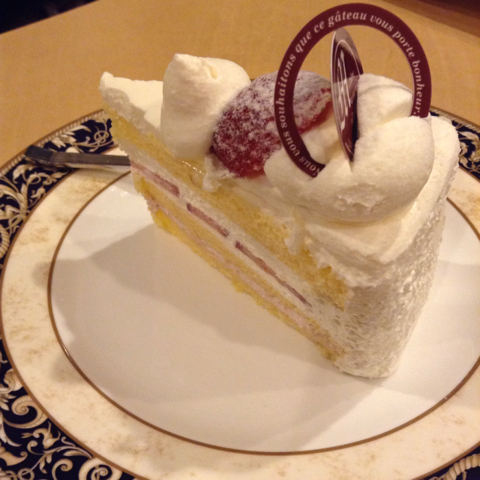 ひと口もらったけど、スポンジは軽く、イチゴクリームが挟んであるなど、仕事が細かい。