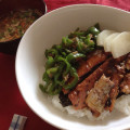 カミさんか作ってくれた鶏そぼろ丼とワカメの味噌汁。