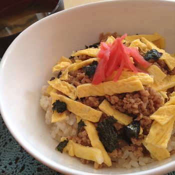 玄米ご飯にもそぼろが挟まっていて、美味しさアップ。