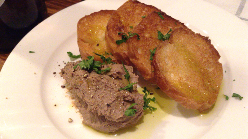 レバパテはしっかりした味。胡椒が効いていて、ワインによく合う。