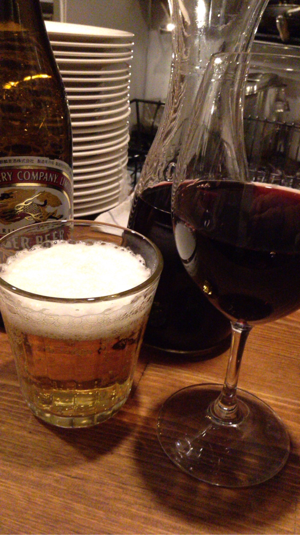 ボクはハウスワインの赤をデキャンタで、カミさんはいつものようにとはいかず瓶ビール。この店には生のサーバーがないのだ。