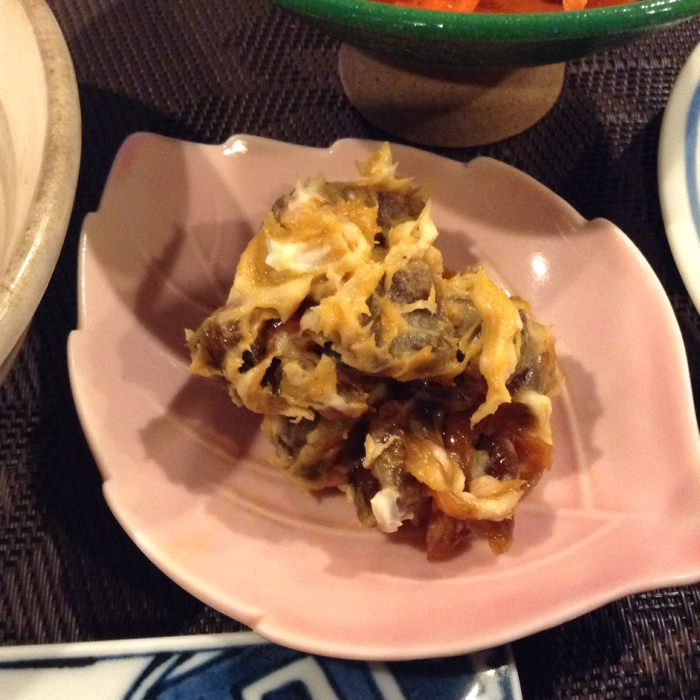 カミさんの実家で作った干し柿にクリームチーズを混ぜて作ったアミューズ。