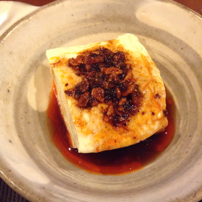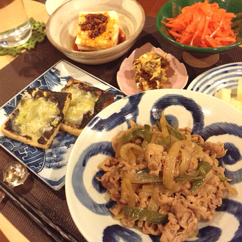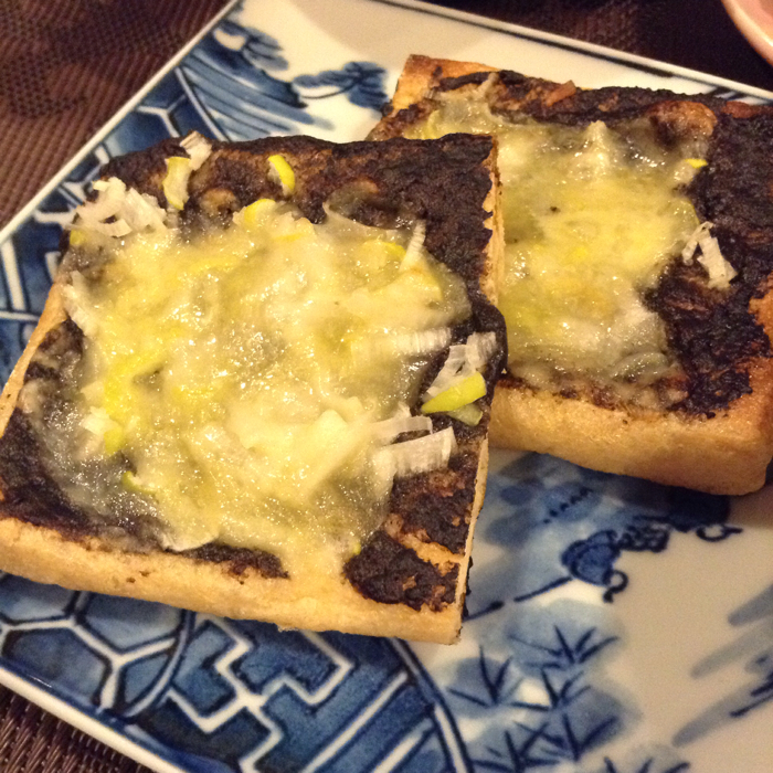 揚げに黒胡麻味噌を塗ってチーズを載せて焼いたおつまみ。これ、いけます。