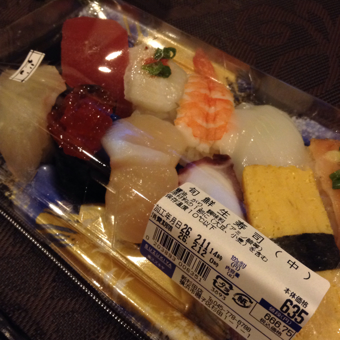 寿司が635円で売っていたのでゲット。