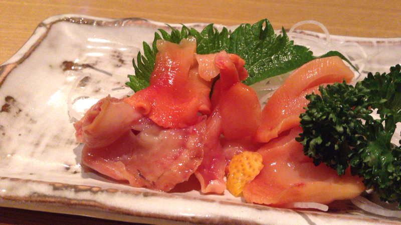 赤貝は小ぶりだったが、プリッとしていて美味。量が少なくなっちゃったから50円引いて300円です〜、とのお達し。このあとすぐに赤貝は品切れに。