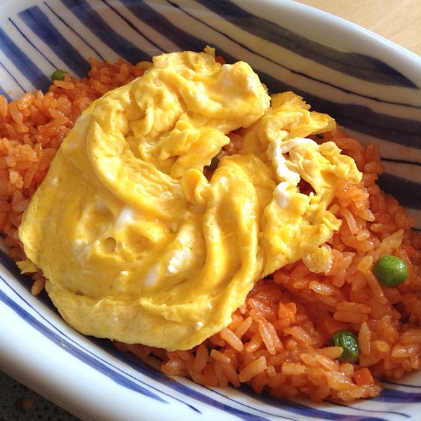 冷凍のチキンライスで作ったなんちゃってオムライスです。