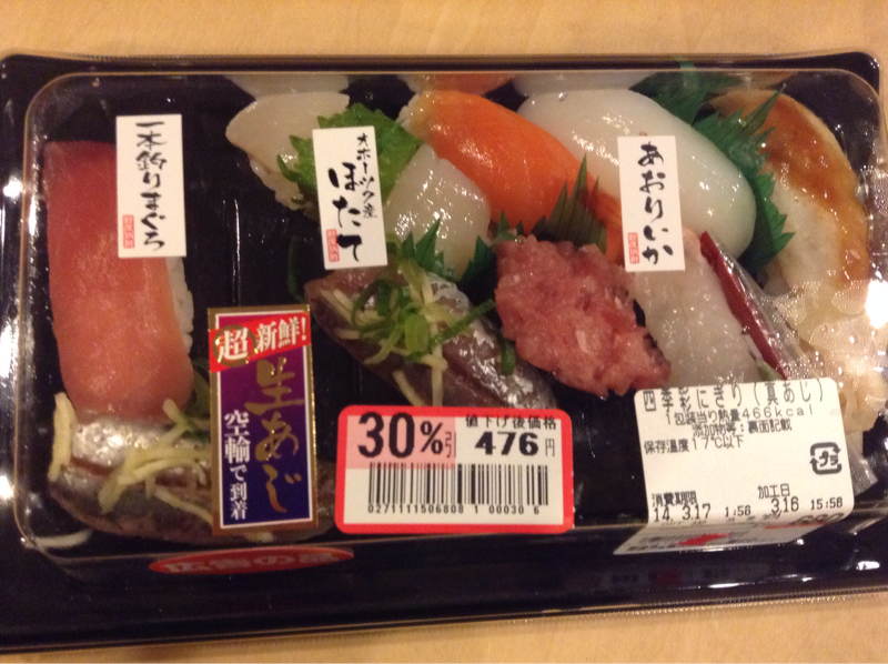 ニュー・オープンのマルエツではこのような見切り品が出るので、割り切って買って来ることにしています。