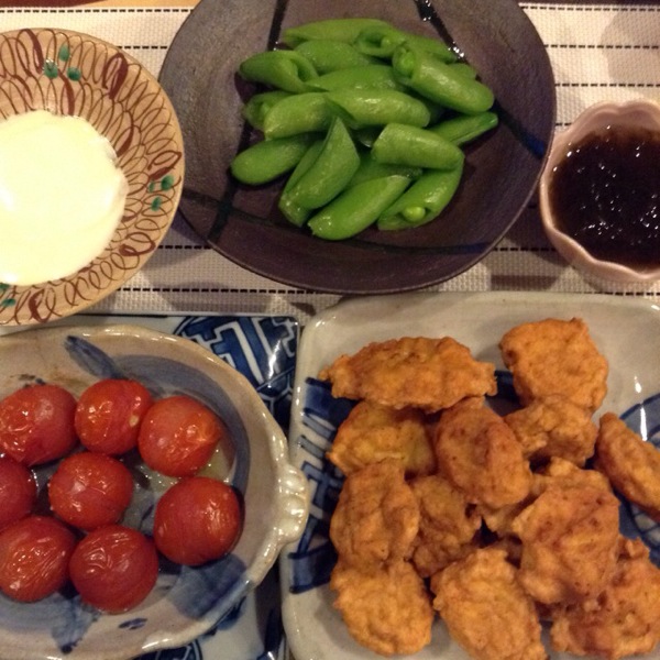 03 4月 4/3の晩メシ 晩は家メシ。残念ながら、今晩もまだ仕事終わらず、酒抜き。 メニューは… 鶏のカレーナゲット。プチトマトのオリーブオイル焼き、茹でスナップエンドウをヨーグルトマヨネーズで、もずく酢という品ぞろえ。 共有:FacebookX ◆関連記事(こちらの記事も読んでみてください) 2/3の晩メシ 3/27の晩ツマ 3/17の晩ツマ 12/16の晩ツマ 投稿者: tori_ichi