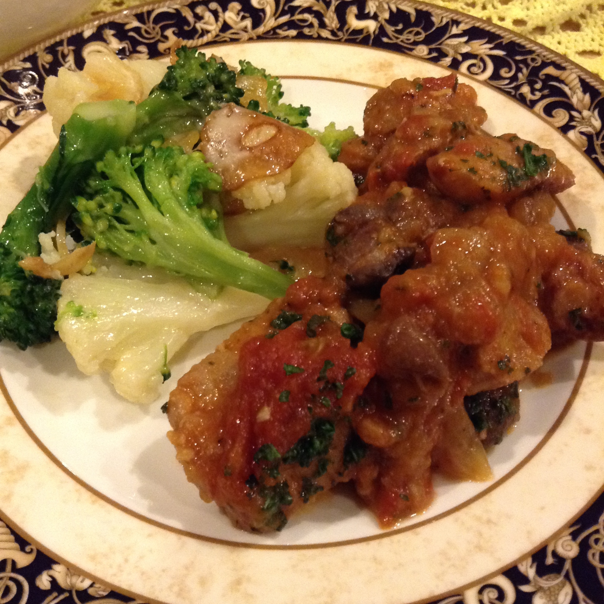 カスレ(豚肉と豆の煮込み)、と野菜のホットサラダ。