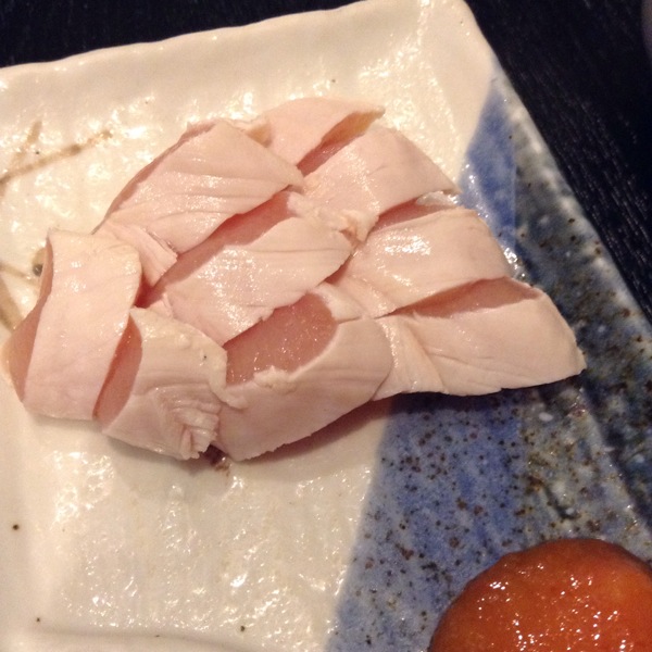 鳥刺し。もみじおろしとポン酢でいただきます。