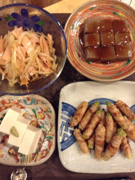 15 7月 7/15の晩餐 呑んだ翌日は休肝日。 メニューは… グリーンアスパラの豚肉巻き焼き。 胡麻豆腐。 ハムとモヤシの中華風サラダ。 こんにゃくの田楽。 共有:FacebookX ◆関連記事(こちらの記事も読んでみてください) 4/12の晩ツマ 11/4の晩ツマは日本酒に合わせてカミさんが見繕ってくれた 投稿者: tori_ichi