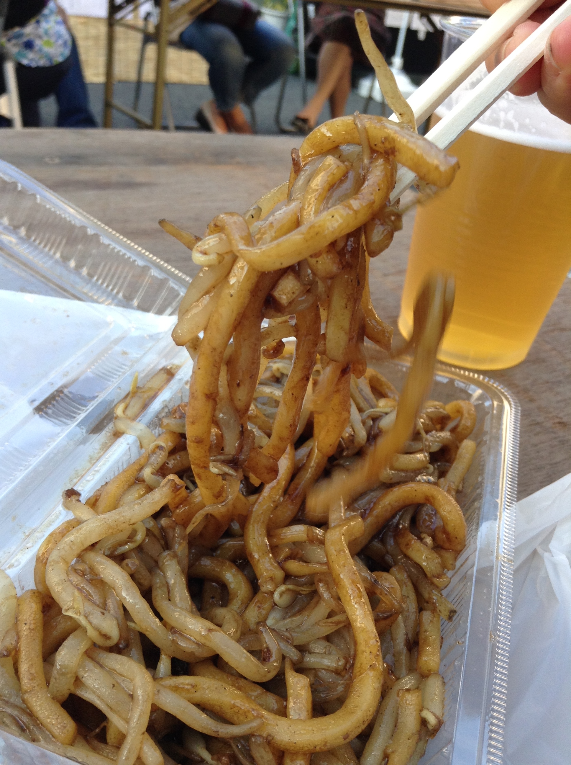 野毛の“ジャズ de 盆踊り”会場にて、出店の料理をつまみながら飲むことにした。