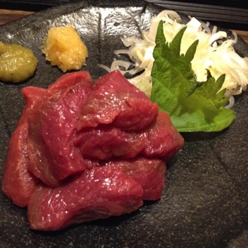 さくらブツ。馬肉の赤みを大ぶりに切ったひと皿。