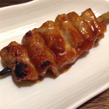 シロの味噌。タレと塩はパリッと焼かれていますが、味噌は柔らかく煮たものをさっと炙って甘い味噌ダレをくぐらしています。