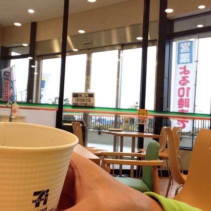 駅の近くまで散歩に出て、セブンイレブンでコーヒーを購入。