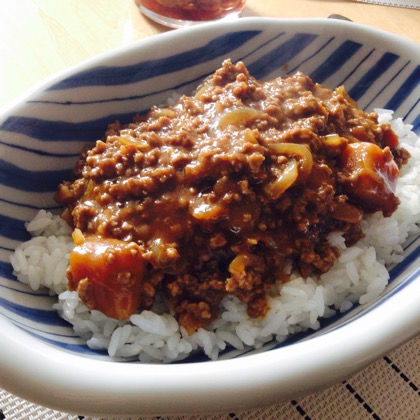 昼はカミさんがひき肉を炒めて作ったカレー。