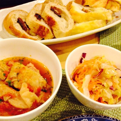 朝は昨日と同じく杉田のスズキヤで買ったパン、タマネギスープ生姜風味、リンゴ。