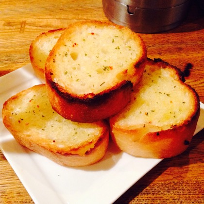 トリッパのソースをつけると極上のつまみになってくれるガーリックトースト。