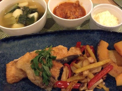 副菜は、おいもとチンゲン菜のコンソメスープ。