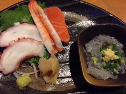 生ビールとのセットで3品の刺身盛りがついてくるこーす。