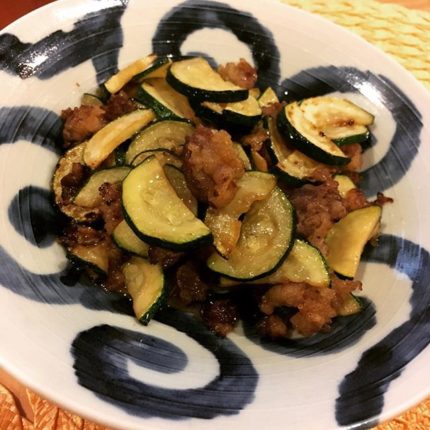 6/7の晩ごはん ズッキーニと豚バラ肉の炒め物