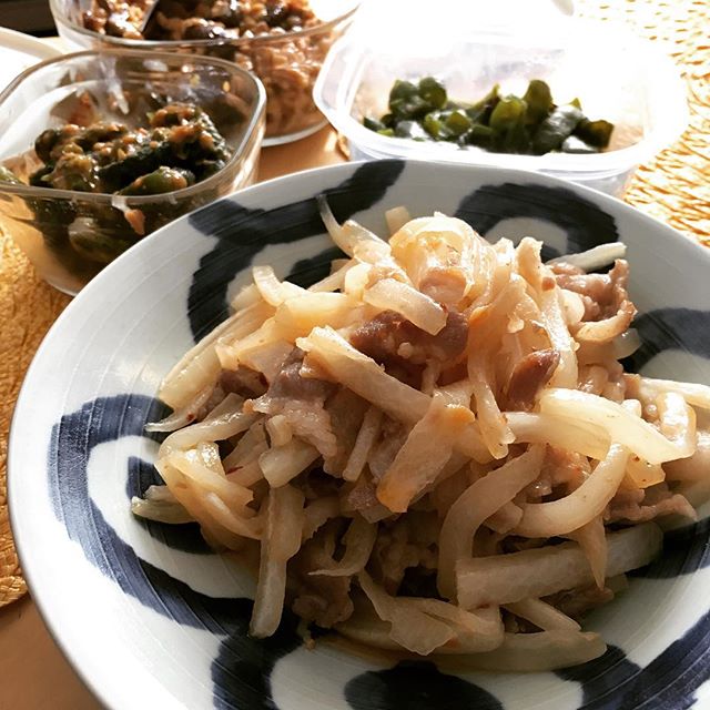 12/16のおひるは、ダイコンと豚バラ肉の創味シャンタン食べラー炒め。大根は1本の半分をぬか漬けに、残り半分を短冊に切って冷凍しておいたもの。半干しの感じになって、保存もできるので、便利でした。