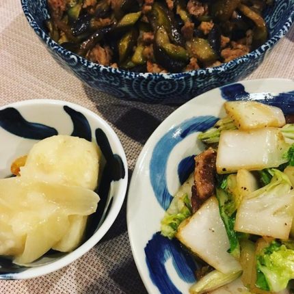 1/10の晩ごはんは、久しぶりにシャカシャカとコンロの前で作った3品。高かった白菜1/4のそのまた半分(昨日鍋にしました)を黒豚のバラ肉で炒めたもの、5本298円で出ていたナスと鶏もも肉のひき肉を醤油炒めにしたもの、5個 […]