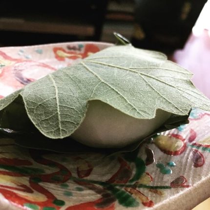 おやつは、ひと足お先に #柏もち 新潟魚沼「ゆのたに」手づくり村から冷凍で届いて解凍しました。柏の葉がとてもいい香りです。